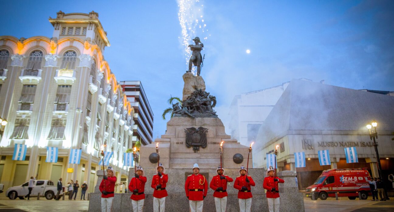 El evento incluyó un preludio musical del Colegio República de Francia, la participación del Cuerpo de Bomberos con antorchas encendidas y la entonación del Himno a Guayaquil.