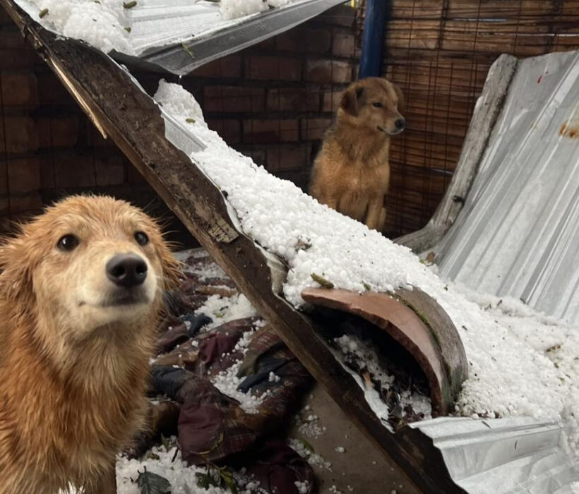 La acumulación y el peso del granizo hicieron que las estructuras cedieran. Imágenes difundidas por la propia fundación mostraron a los perros corriendo bajo la tormenta en busca de refugio, mientras los techos yacían en el suelo.