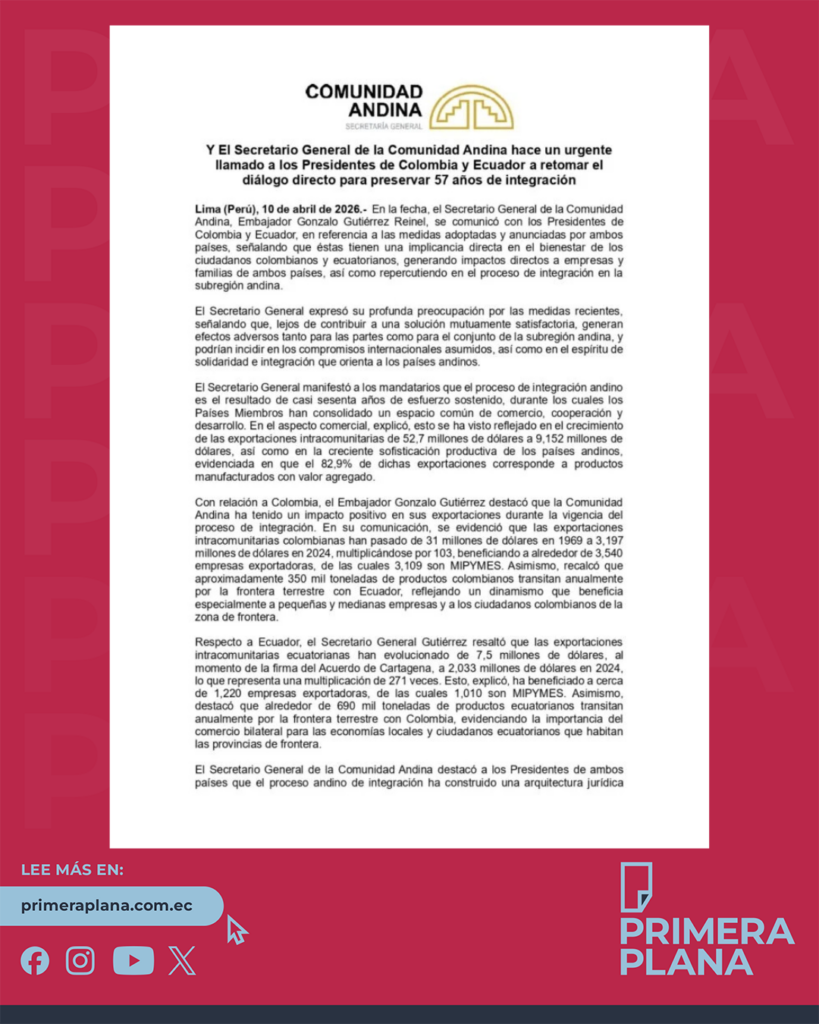 La CAN advirtió que estas medidas afectan compromisos internacionales y la solidaridad regional. El organismo recordó que las economías de ambos países mantienen una alta interdependencia.