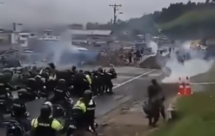 En ese sector, transportistas pesados bloquearon desde temprano la vía E35, a la altura del cementerio de la parroquia. Tras varios intentos de diálogo, efectivos de la Policía Nacional utilizaron gases lacrimógenos para dispersar a los manifestantes, quienes reclamaban por el alza del combustible y la inseguridad en las carreteras.