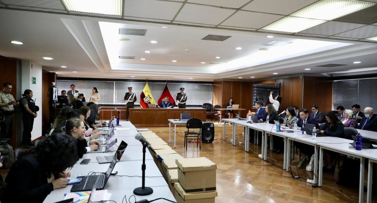 El conjuez Olavo Hernández dirige la audiencia, en la que se examinarán los cargos fiscales y eventuales nulidades procesales. La investigación redujo de 37 a 25 los procesados que permanecen en la causa, entre ellos allegados del empresario Conto Patiño, señalados como operadores de Sinohydro.