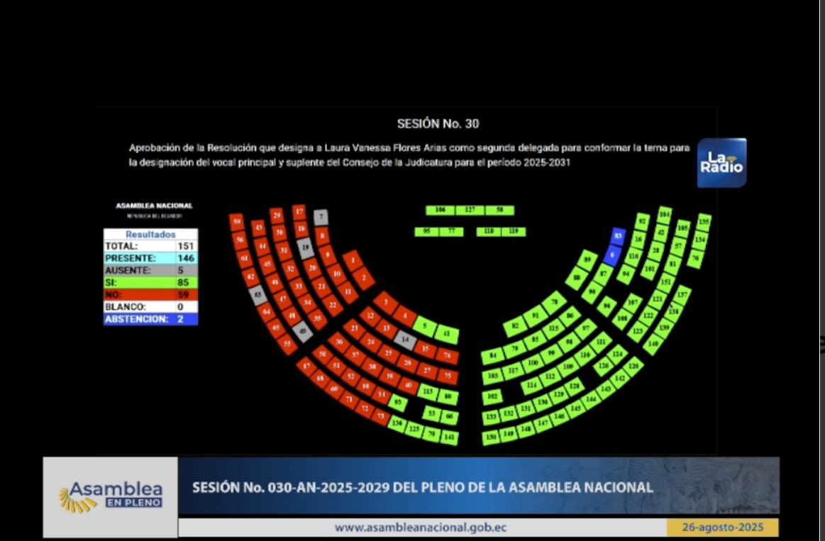 NACIONALES Asamblea completa terna para el CJ con la designación de... Con 85 votos a favor, la Asamblea Nacional nombró este 26 de agosto a Laura Flores Arias como la nueva...