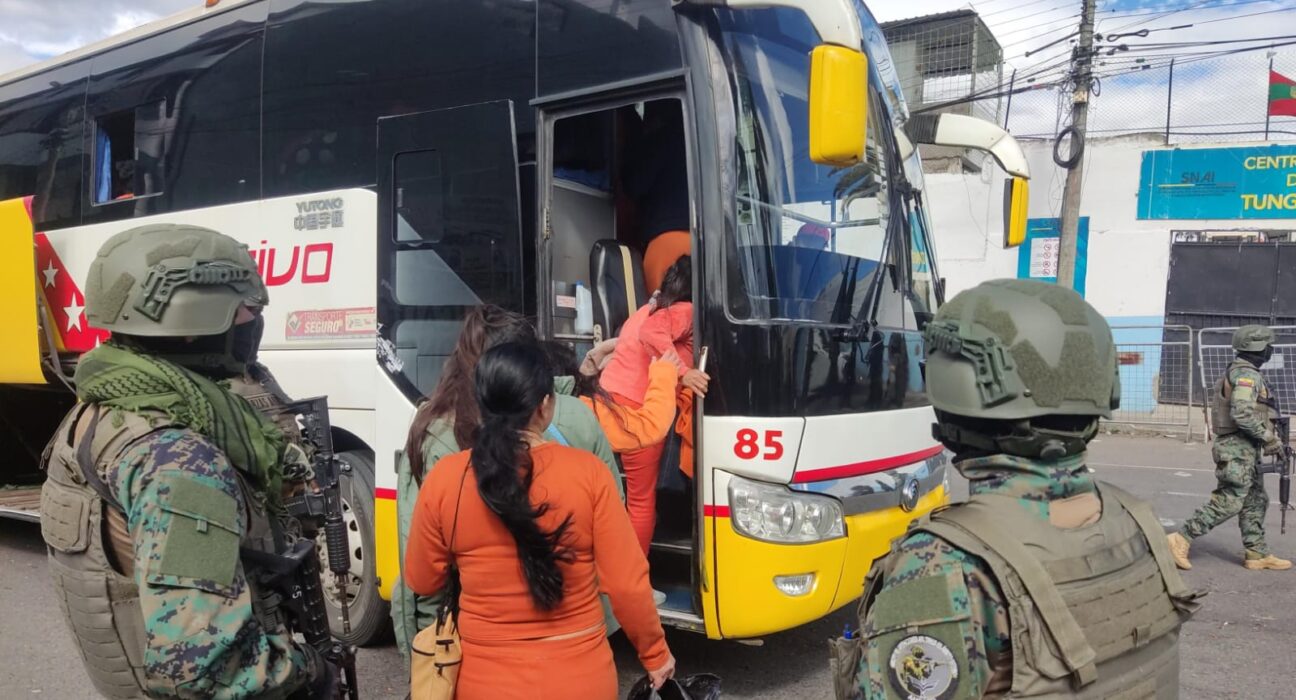 Este miércoles, 30 de julio, 42 mujeres privadas de la libertad, de nacionalidad colombiana, fueron trasladadas desde el Centro de Rehabilitación Social de Tungurahua hasta el Puente Internacional de Rumichaca, en la frontera norte del país, donde fueron entregadas a las autoridades migratorias de Colombia.