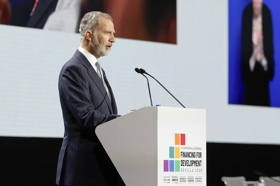 Don Felipe ha asistido junto a la reina Letizia a la apertura de esa conferencia de Sevilla en la que se pretenden impulsar nuevos mecanismos de cooperación, y ha intervenido ante el plenario para dar la bienvenida a las más de 200 delegaciones asistentes, medio centenar de ellas encabezadas por jefes de Estado o de Gobierno.