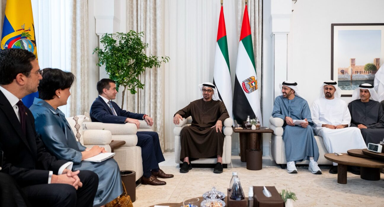 Como parte de su agenda en Emiratos Árabes Unidos, Noboa también mantuvo un encuentro oficial con Su Alteza, Jeque Mohamed bin Zayed Al Nahyan, presidente del país anfitrión, con el objetivo de fortalecer la cooperación bilateral, explorar nuevas oportunidades de inversión y consolidar la presencia del Ecuador en uno de los mercados más dinámicos del mundo.