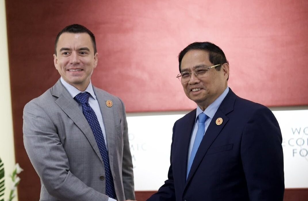 En el marco de su visita oficial en China, el presidente Daniel Noboa se reunió con el primer ministro de Vietnam, Pham Minh Chinh. Ambas autoridades acordaron fortalecer la cooperación en áreas como infraestructura, telecomunicaciones, agricultura y economía.
