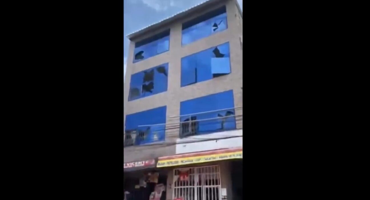 El ataque causó daños materiales en los ventanales de un edificio cercano y afectó también a un vehículo estacionado en la zona. Pese al impacto, no se reportaron heridos ni víctimas mortales, confirmaron las autoridades.