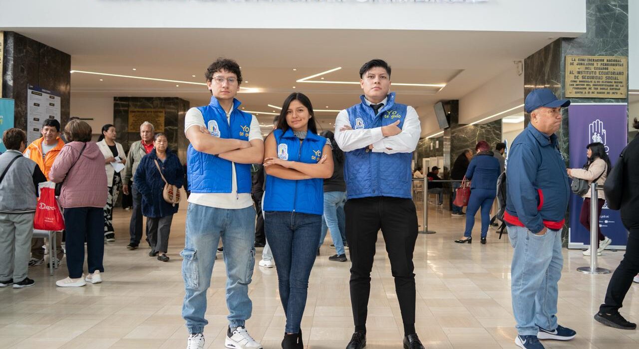 Como parte del proyecto, jóvenes universitarios y estudiantes de institutos de educación superior realizan pasantías en el IESS, donde apoyan, orientan y acompañan a los asegurados en sus trámites y en el acceso a los servicios de la institución.