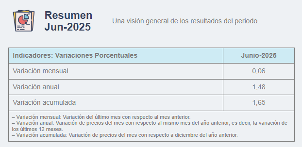 La inflación anual en Ecuador alcanzó el 1,48 % en junio de 2025. Es un aumento de 0,3 puntos frente al 1,18 % registrado en el mismo mes del año anterior, según informó el Instituto Nacional de Estadística y Censos (INEC) este viernes, 4 de julio.