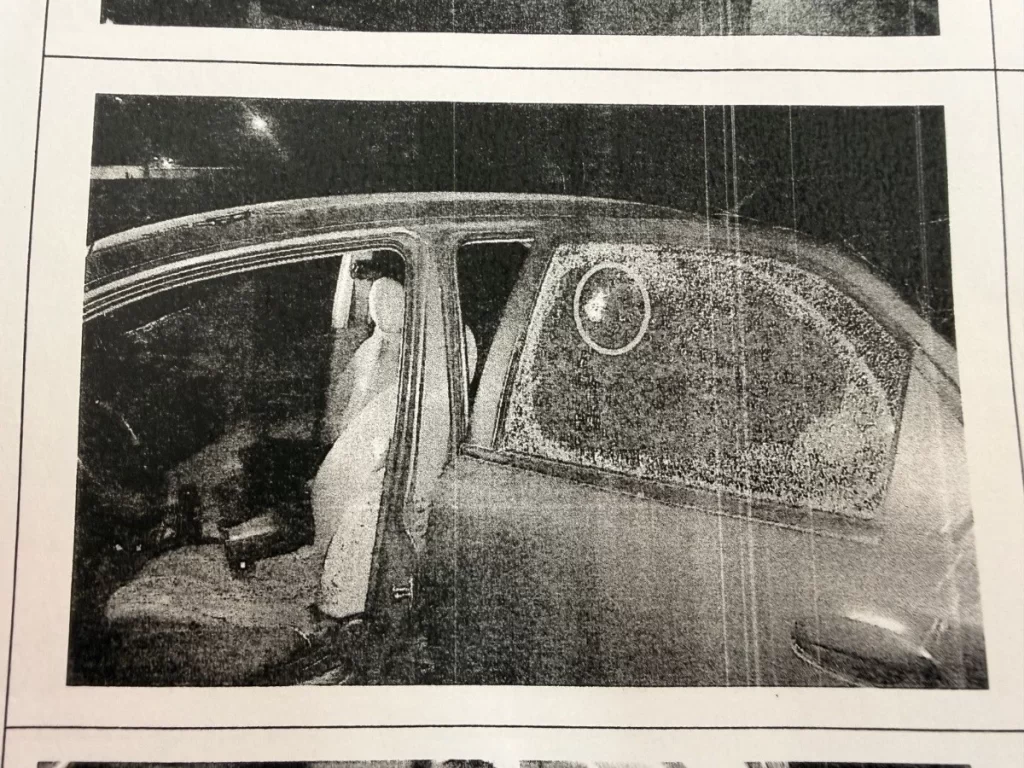 (Expediente fiscal) En las ventanas del carro quedaron las huellas del disparo.