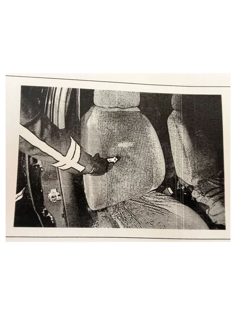(Expediente fiscal) Criminalística fijó los orificios de bala en el asiento del copiloto donde iba Carlos Vega.