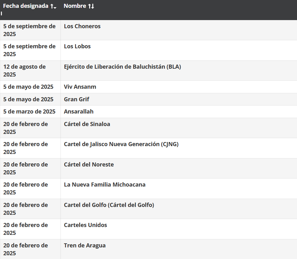 La designación permite a Estados Unidos aplicar sanciones financieras, restricciones migratorias y acciones judiciales contra personas o entidades que colaboren con estas organizaciones.
