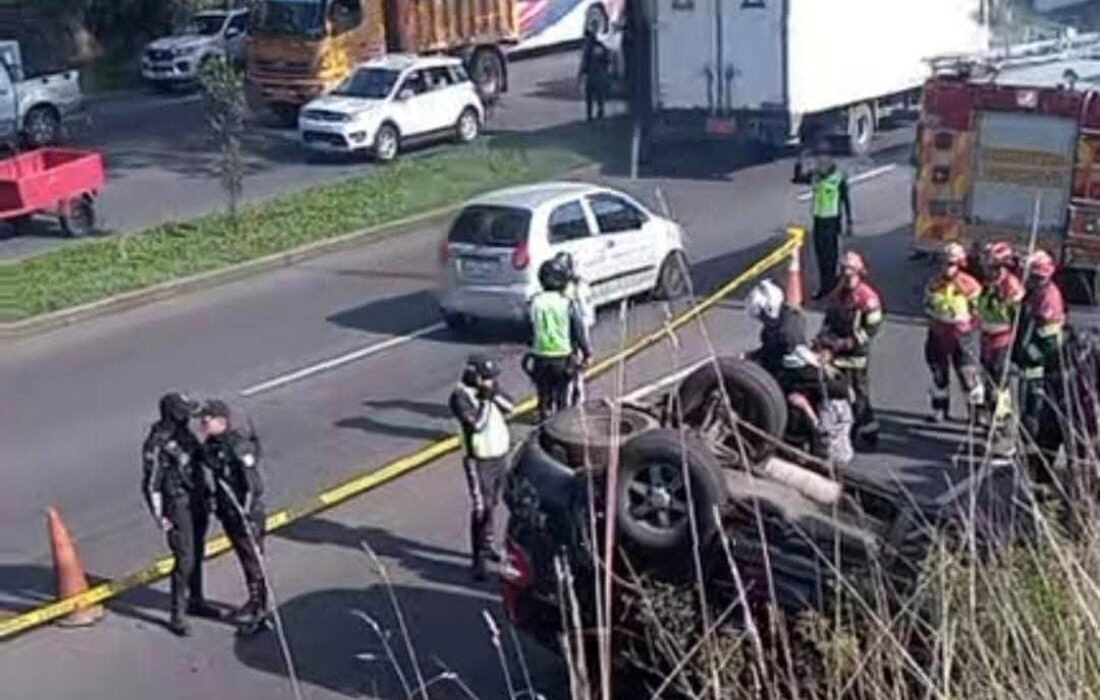 El SUV quedó volcado sobre la vía, mientras que el motociclista perdió la vida de forma inmediata y su cuerpo quedó tendido en la calzada.