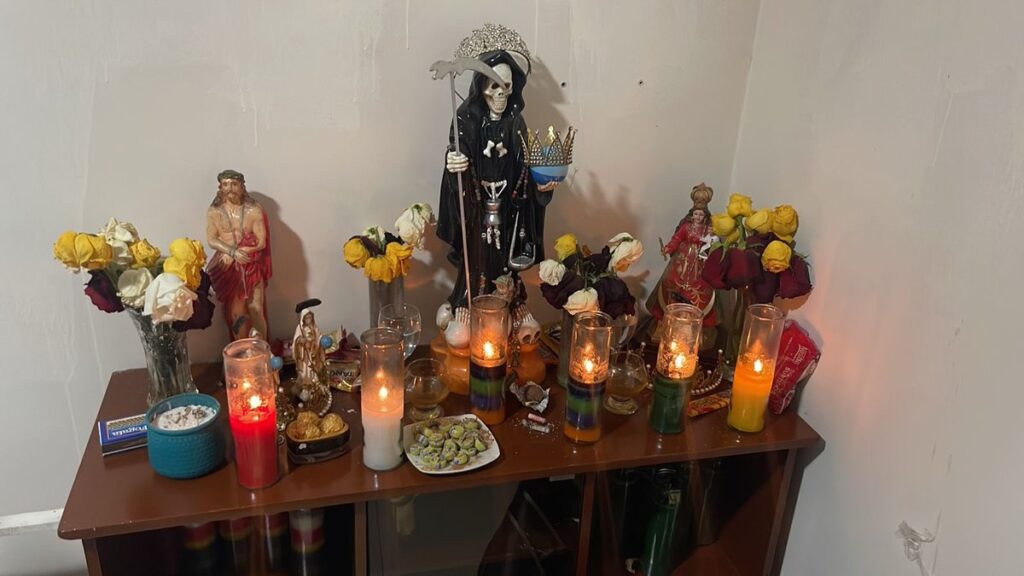 En una de las propiedades, una mansión, los agentes hallaron un altar a la Santa Muerte. En una habitación, localizaron una maleta roja con fajos de billetes de 20 dólares. Hubo aprehendidos en el lugar.