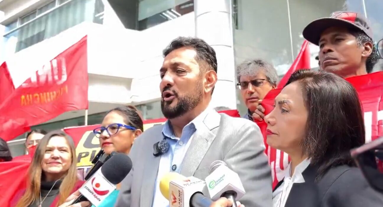 El director nacional del partido político Unidad Popular, Geovanni Atarihuana, presentó ante la Corte Constitucional una demanda de inconstitucionalidad contra la recientemente aprobada Ley de Solidaridad Nacional, este 20 de junio de 2025.