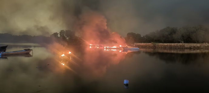La madrugada de este lunes, 1 de septiembre, un grupo armado quemó diez embarcaciones, entre ellas dos bolicheros y ocho pangas, en el estero Huaylá. También se escucharon múltiples ráfagas de disparos en el barrio Amazonas 1, de acuerdo con un reporte del diario El Universo.