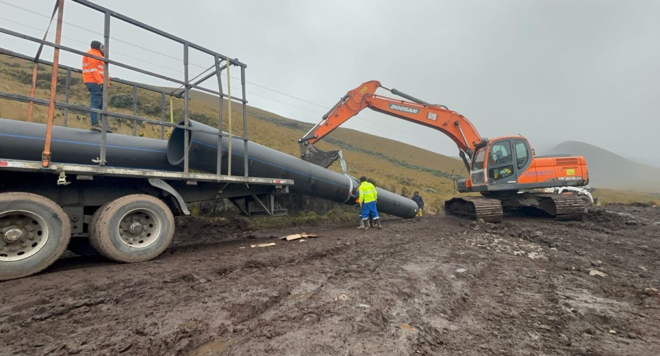 El alcalde de Quito, Pabel Muñoz, informó que este 17 de julio ya llegaron los primeros tubos que servirán para reemplazar el tramo dañado de la línea de conducción Mica – Quito Sur, en el páramo del Antisana.