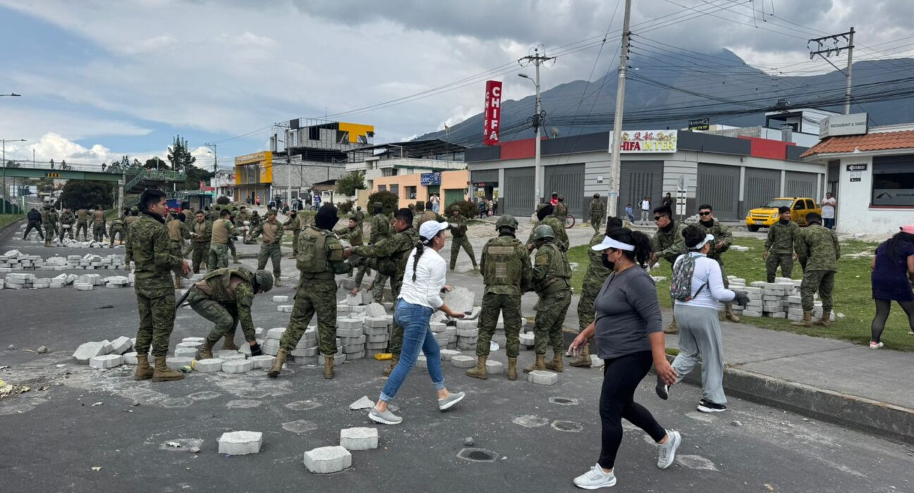 En Imbabura, los militares resguardan las zonas despejadas de la vía E35, especialmente en puntos como El Cajas y el redondel de González Suárez, donde la circulación ya se desarrolla con normalidad.