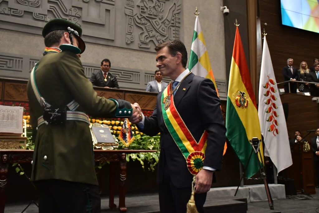 «Dios, patria y familia, sí, juro», sostuvo el nuevo jefe de Estado boliviano al tomar juramento. Paz Pereira, nacido en Santiago de Compostela (España) en 1967 por el exilio de sus padres, juró el cargo ante su vicepresidente, el expolicía Edmand Lara, y ante los diputados y senadores electos en los recientes comicios generales que también inician este sábado una nueva legislatura.