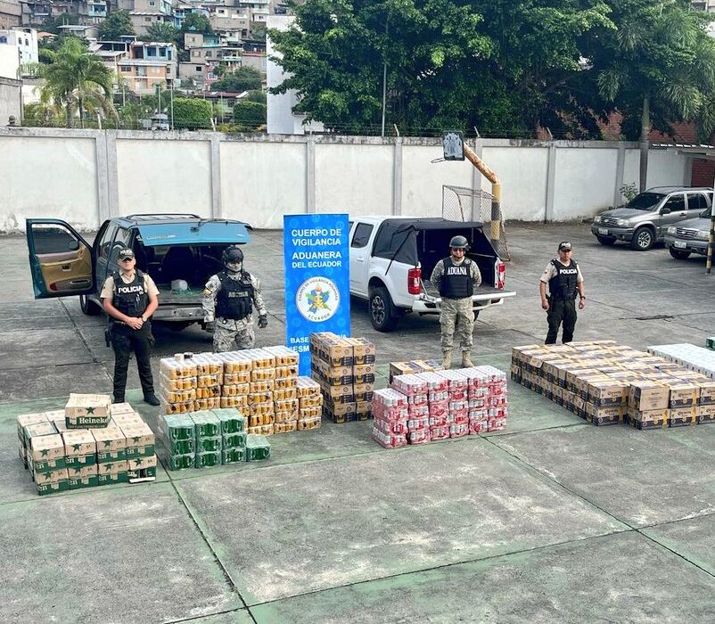 Un cargamento de 6.528 latas de cerveza de origen extranjero fue interceptado en la provincia de Esmeraldas por personal del Servicio Nacional de Aduana del Ecuador (Senae), según informó la entidad a través de su cuenta en X.