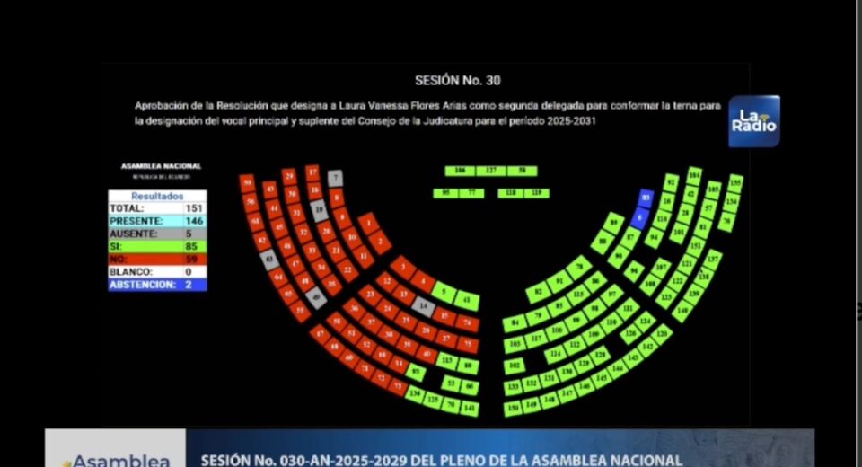 Con 85 votos a favor, la Asamblea Nacional nombró este 26 de agosto a Laura Flores Arias como la nueva candidata de la Función Legislativa en la terna para la designación del Consejo de la Judicatura, en reemplazo de María Emilia Grijalva, quien presentó su renuncia irrevocable al proceso. La moción fue presentada por la […]
