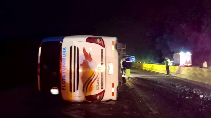 Un bus de transporte interprovincial se volcó la madrugada de este domingo, 14 de diciembre, en la vía Alóag–Santo Domingo, a la altura del kilómetro 19, en el cantón Mejía, provincia de Pichincha, dejando al menos 10 personas heridas y generando el cierre total de la carretera.